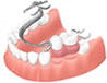 金属の留め金をつけて、取り外しの入れ歯を留める方法。 |